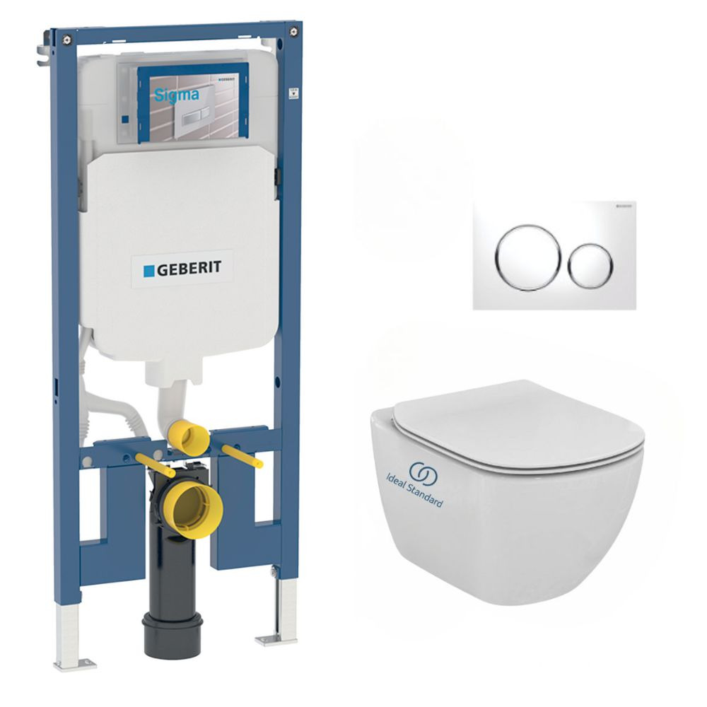 Pack WC Bati-support Geberit extra-plat UP720 + WC Ideal Standard Tesi Aquablade + Abattant softclose + Plaque Blanc/Chrome