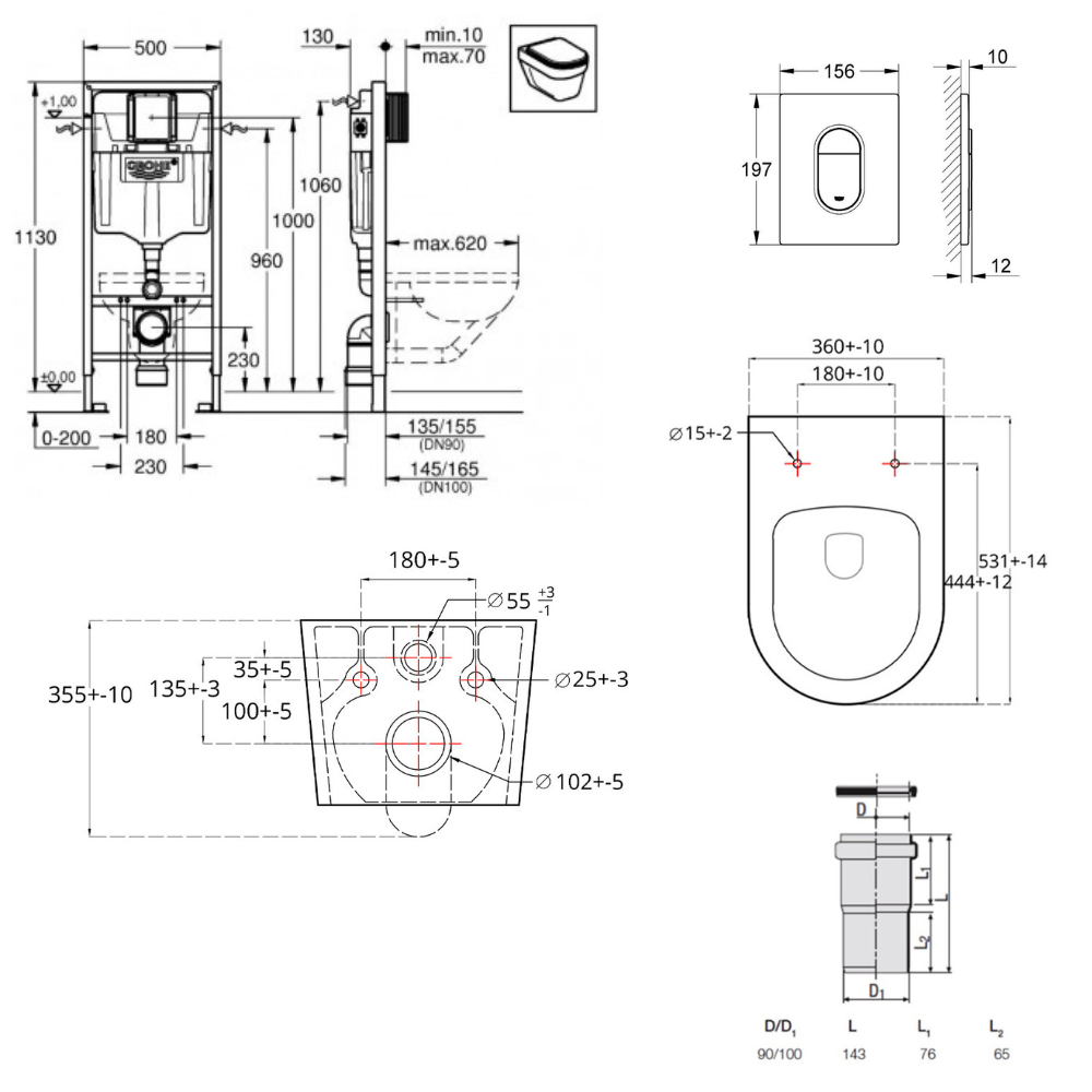 - Redi Manchon de raccordement Ø 90/100 MM pour Rapid SL ou Geberit (VS0564190)