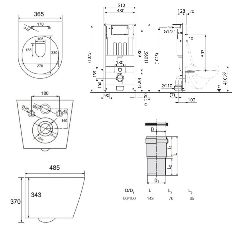 - Redi Manchon de raccordement Ø 90/100 MM pour Rapid SL ou Geberit (VS0564190)