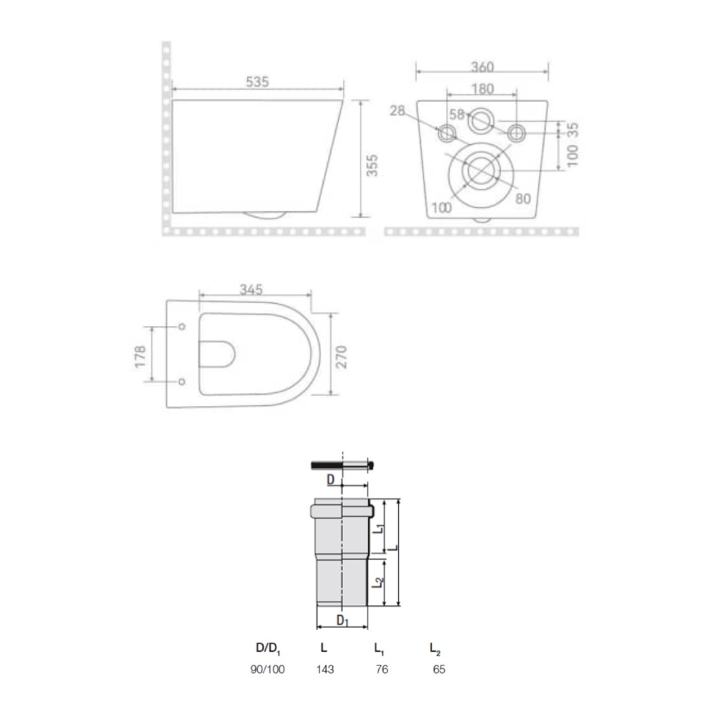 - Redi Manchon de raccordement Ø 90/100 MM pour Rapid SL ou Geberit (VS0564190)