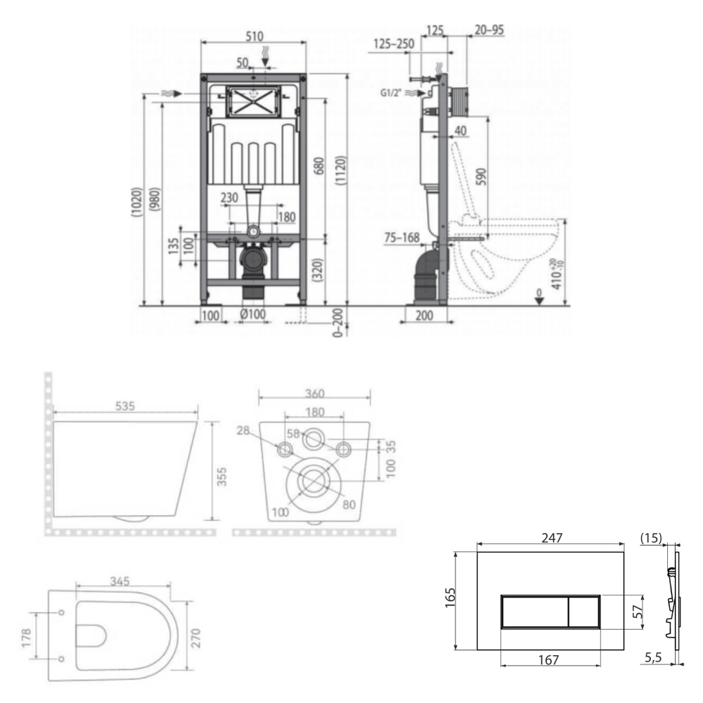 - Pour le montage de cuvettes WC suspendues avec un pas de raccordement de 180 mm ou 230 mm