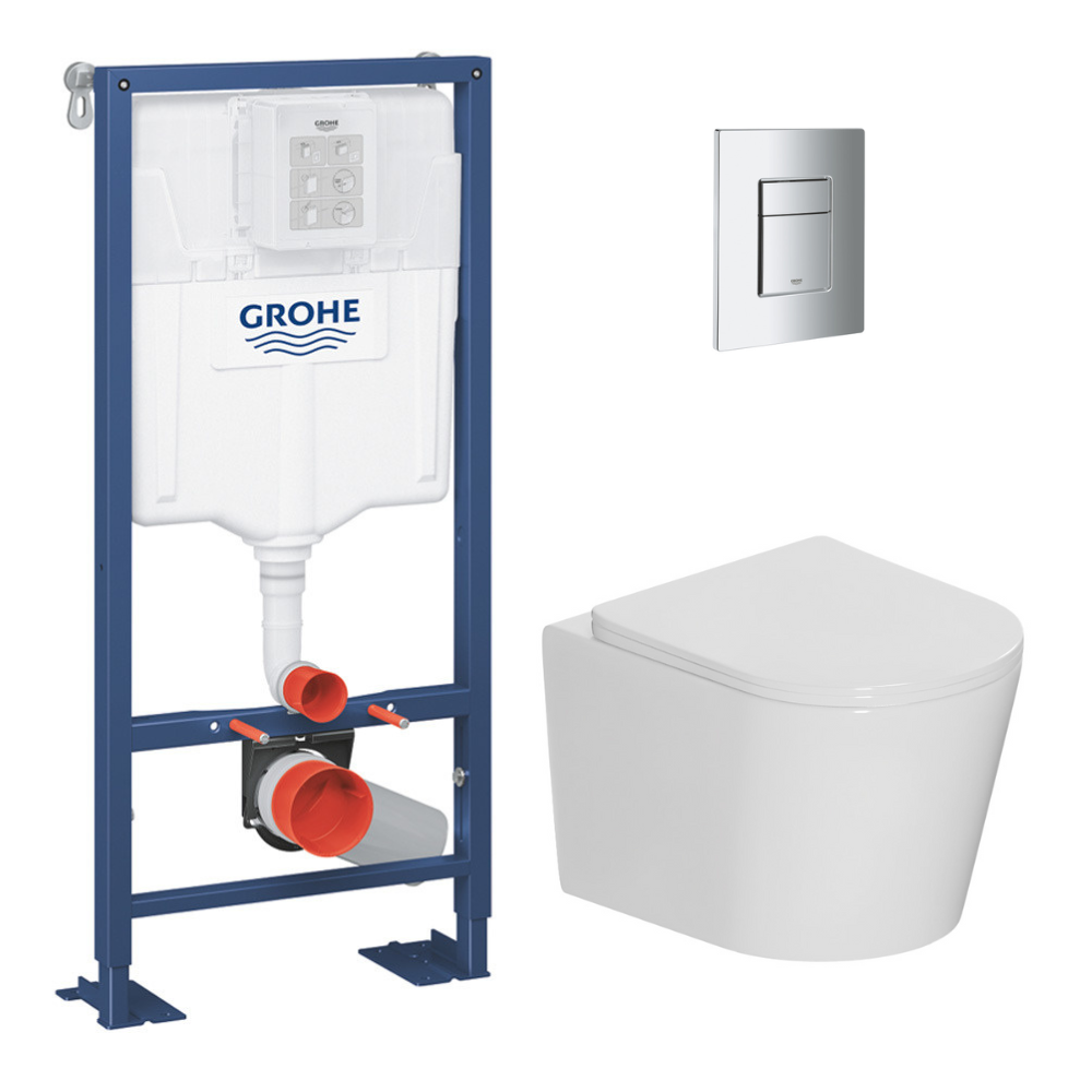 Caractéristiques du pack WC bâti-support autoportant Grohe Solido 1.13 M + WC sans bride Ceramia + abattant SoftClose + plaque chrome (AUTOPORTANT-CETOR1) :