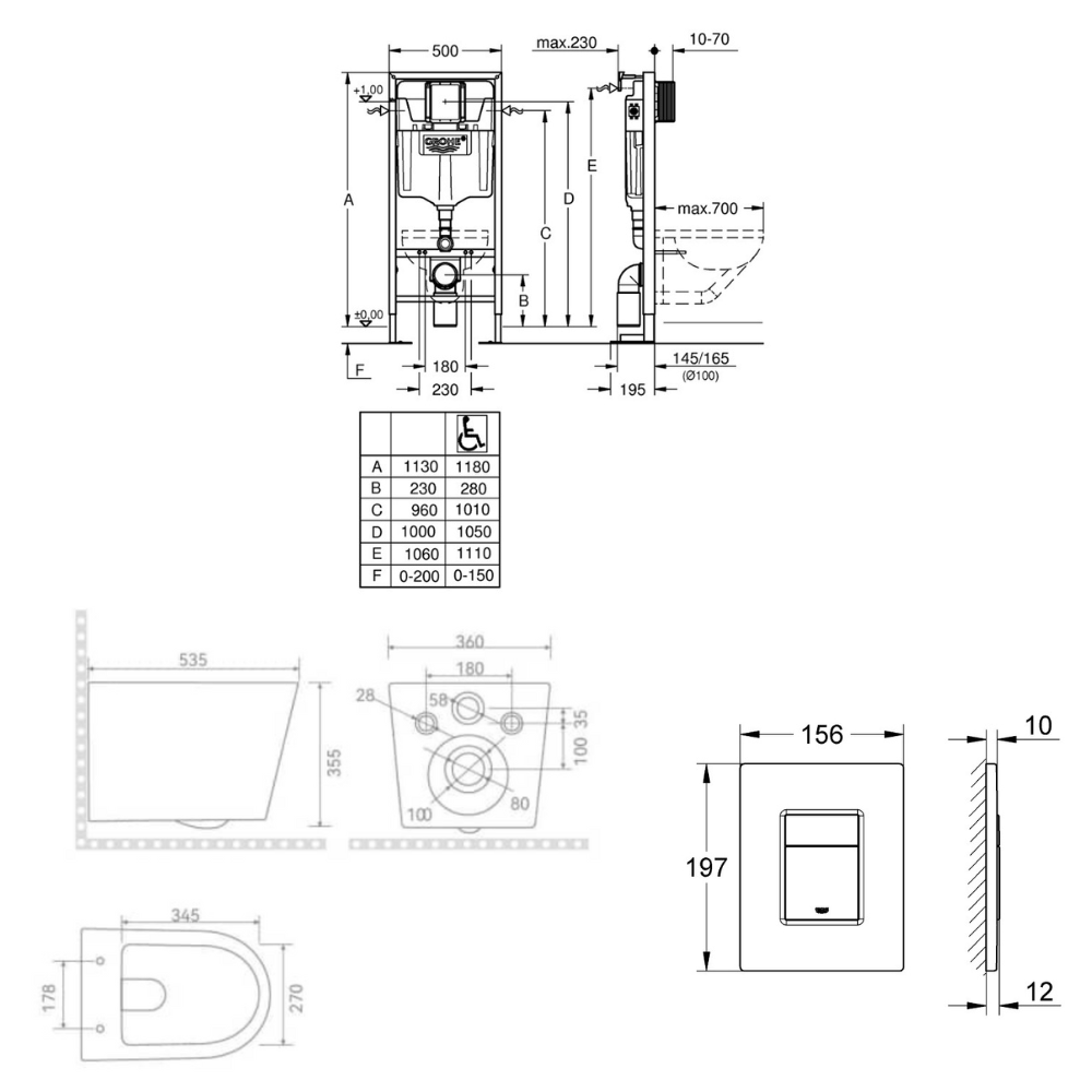 - Grohe SOLIDO Bâti-support autoportant pour WC, 1,13 M (39981000)