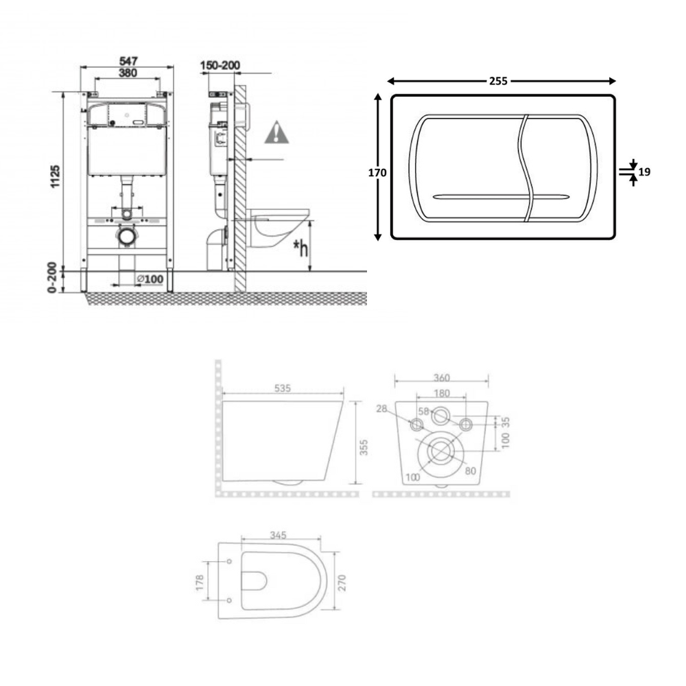 - Type de produit : ensemble WC suspendu sans bride + abattant SoftClose