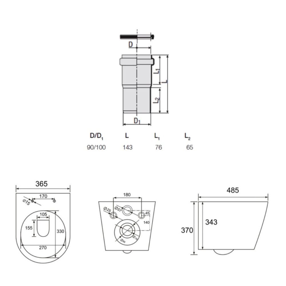 - Redi Manchon de raccordement Ø 90/100 MM pour Rapid SL ou Geberit (VS0564190)