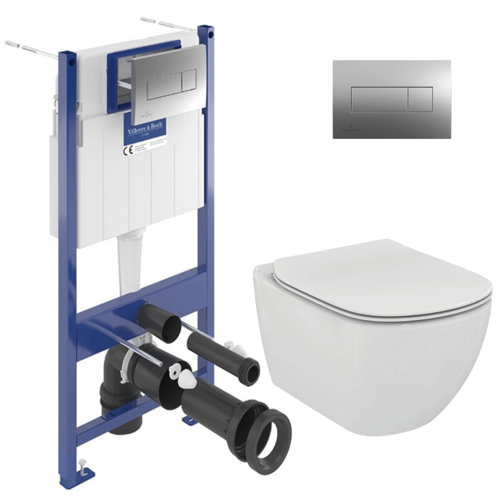 Caractéristiques du ViConnect Pro S Pack WC bâti-support sol-mur Villeroy & boch ViConnect Pro S + WC suspendu sans bride Ideal Standard + abattant ultra-fin Softclose + plaque chromé (VICONNECTTESI-2CH) :