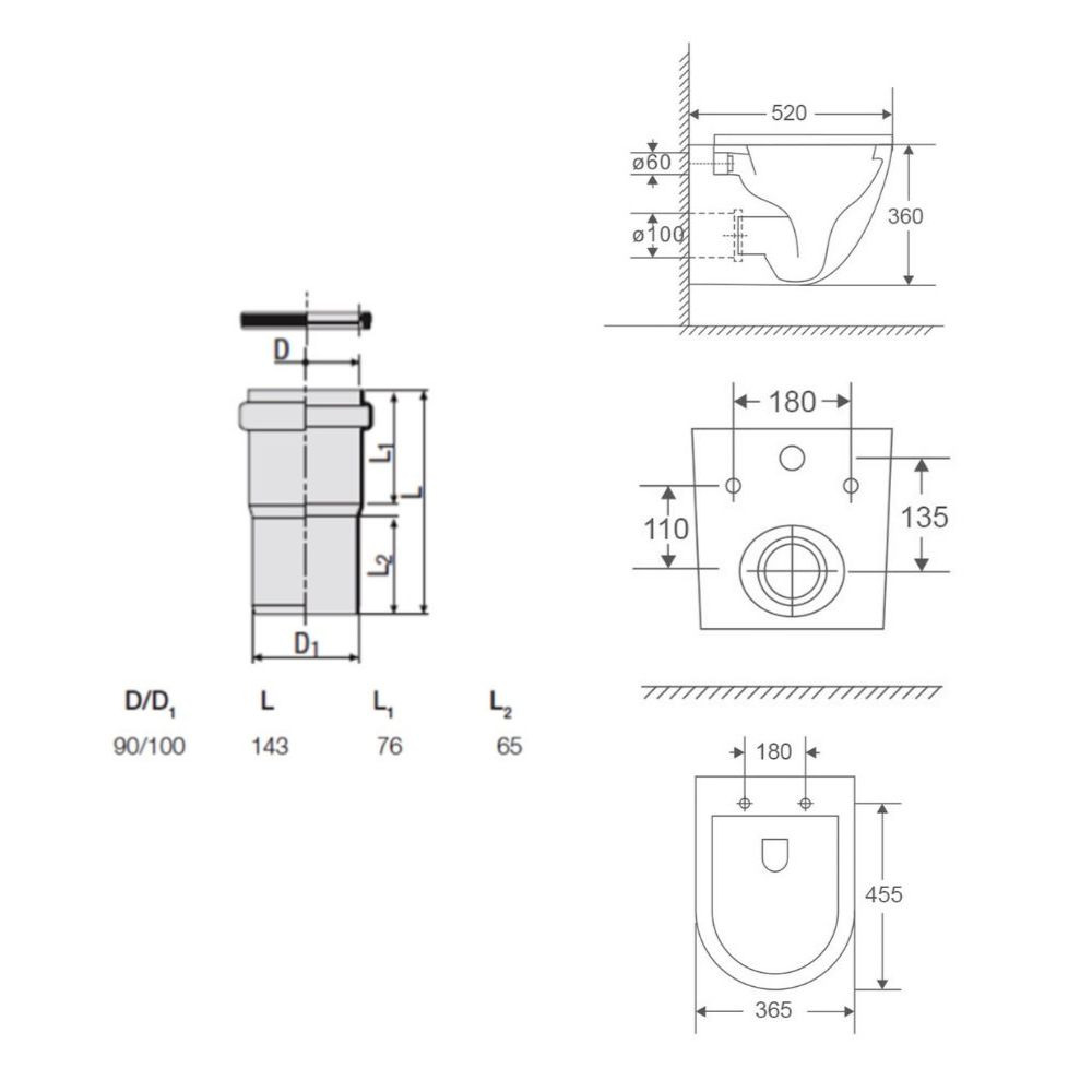 - Redi Manchon de raccordement Ø 90/100 MM pour Rapid SL ou Geberit (VS0564190)
