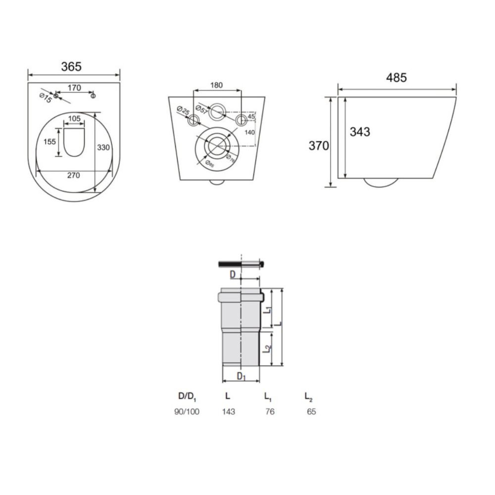 - Pour l’installation d’un WC suspendu avec un pas de raccordement de 180 mm ou 230 mm