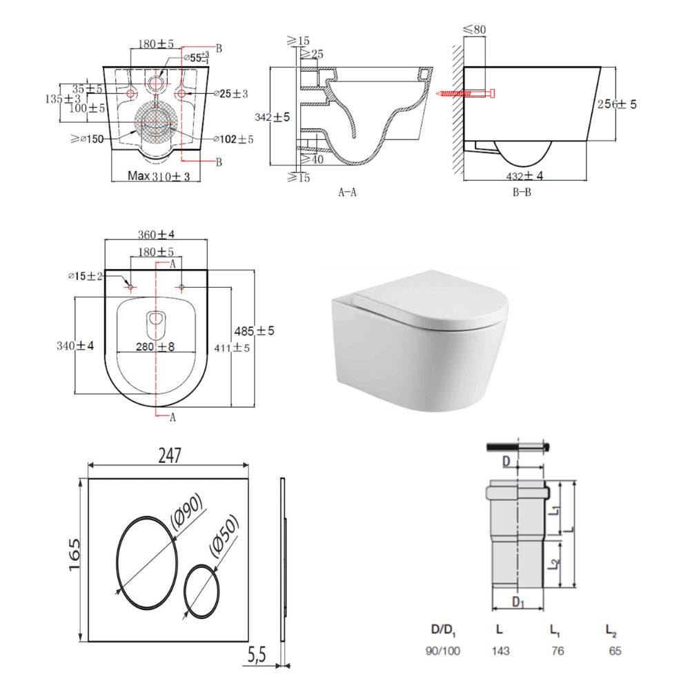 WC suspendu sans bride et fixations invisibles + abattant frein de chute (SATBRE010RREXP) :