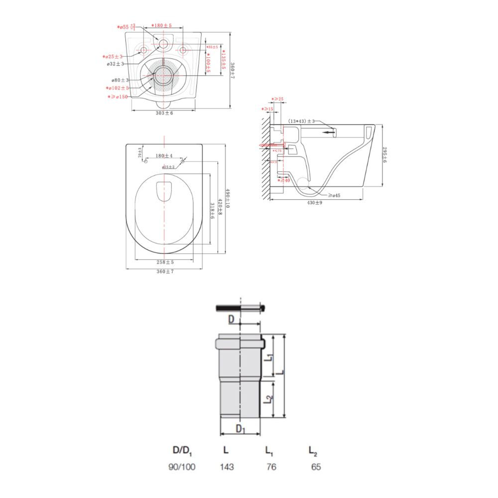 - Pour l’installation d’un WC suspendu avec un pas de raccordement de 180 mm ou 230 mm
