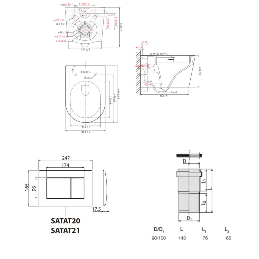 - Préparation pour raccordement d’un support avec transition DG 1/2" (par ex. pour siège de bidet SoftClose SATBEASY2233 ou douchette WC).