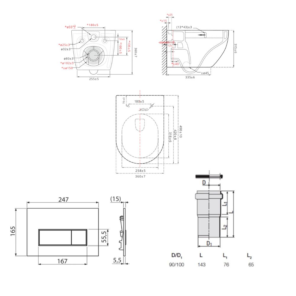 - Pour l’installation d’un WC suspendu avec un pas de raccordement de 180 mm ou 230 mm