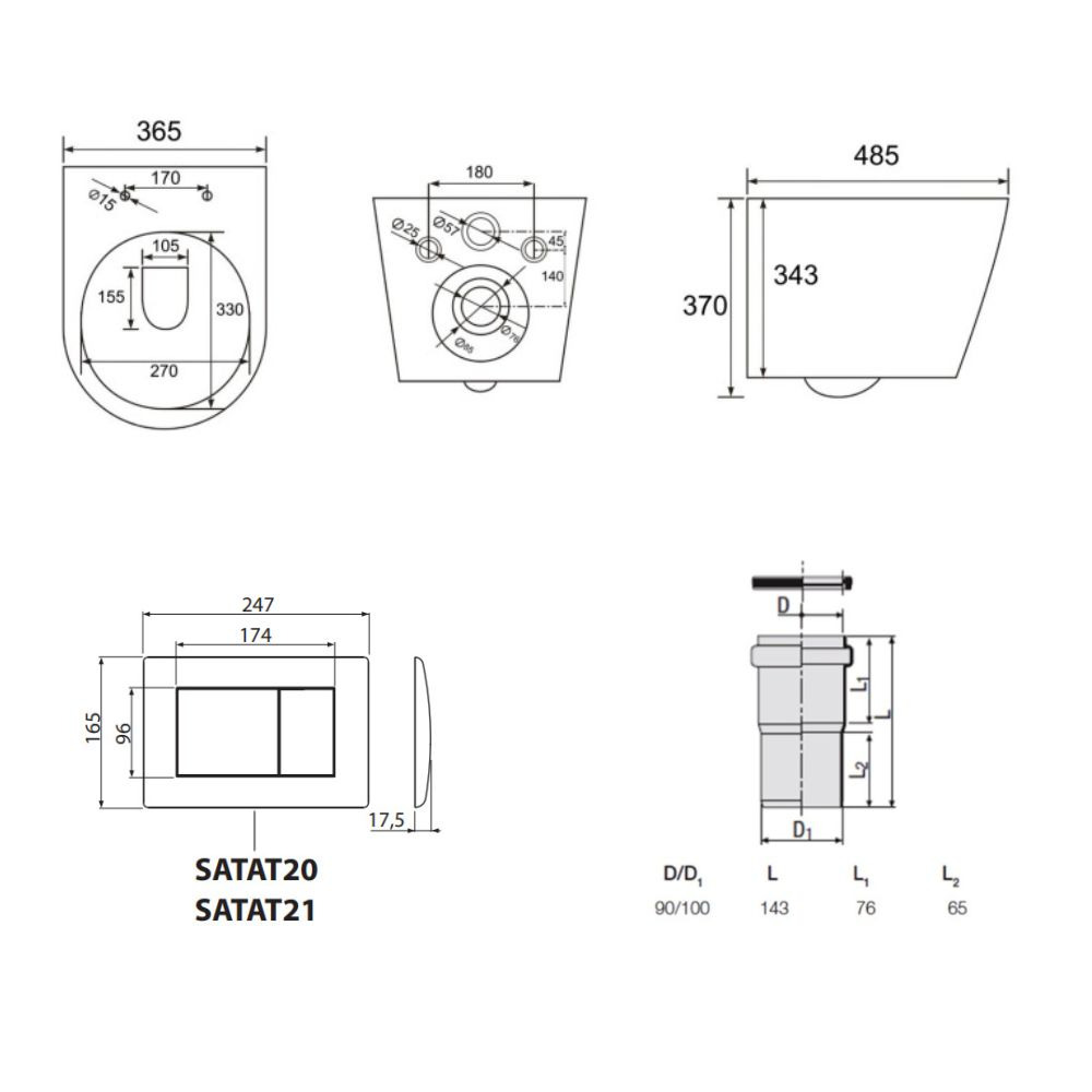 - Préparation pour raccordement d’un support avec transition DG 1/2" (par ex. pour siège de bidet SoftClose SATBEASY2233 ou douchette WC).