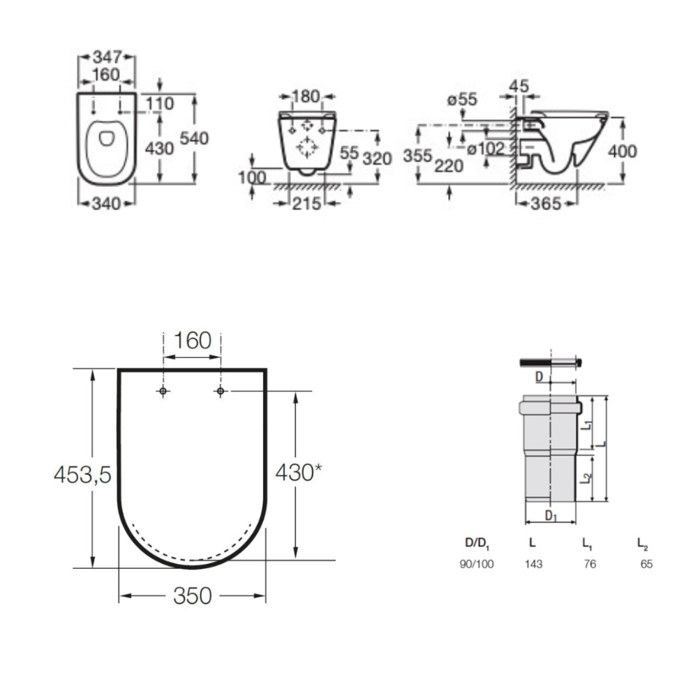 - Roca Cuvette WC suspendue en céramique sans bride Rimless (A34647L000)
