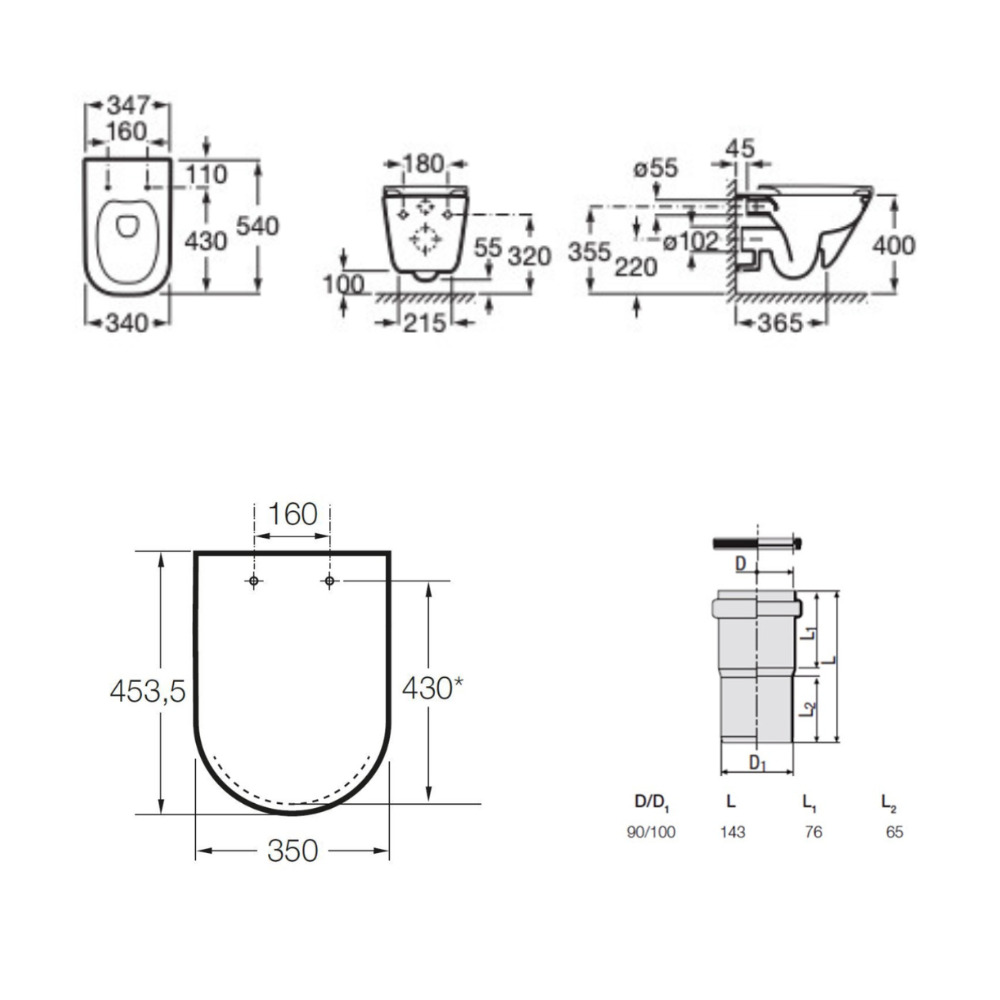 • Roca Cuvette WC suspendue en céramique sans bride Rimless (A34647L000)