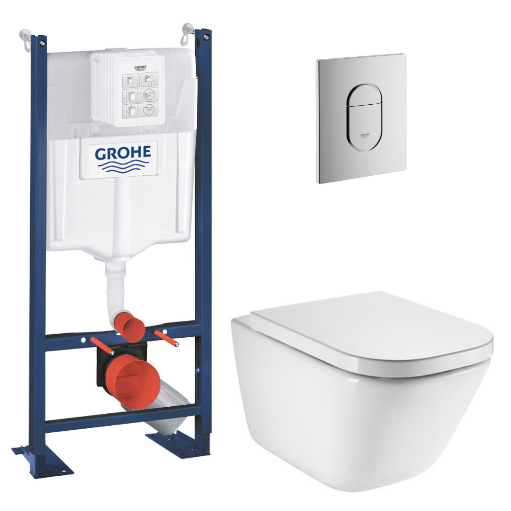 Pack WC bâti-support autoportant Rapid SL + WC suspendu Roca avec abattant SoftClose + plaque blanche (GRRROGAWR06-U)