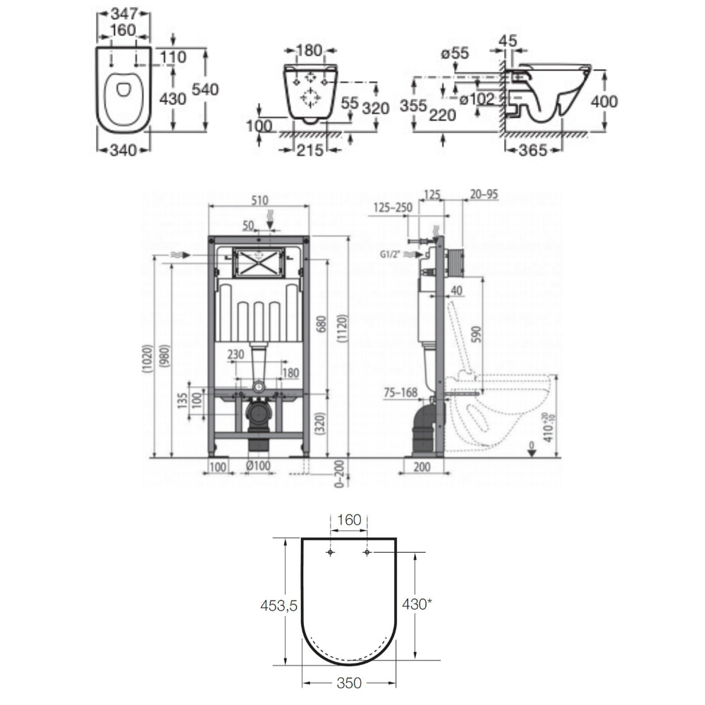 Caractéristiques du pack WC bâti-support autoportant + WC suspendu sans bride avec abattant SoftClose + plaque blanche (STROGAWR02-U) :