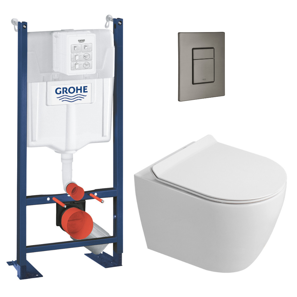 Caractéristiques du pack WC bâti-support autoportant Grohe Rapid SL + WC suspendu sans bride Ceramia PixL avec abattant SoftClose + plaque hard graphite brossé (GRRCEPXWR05-FR) :