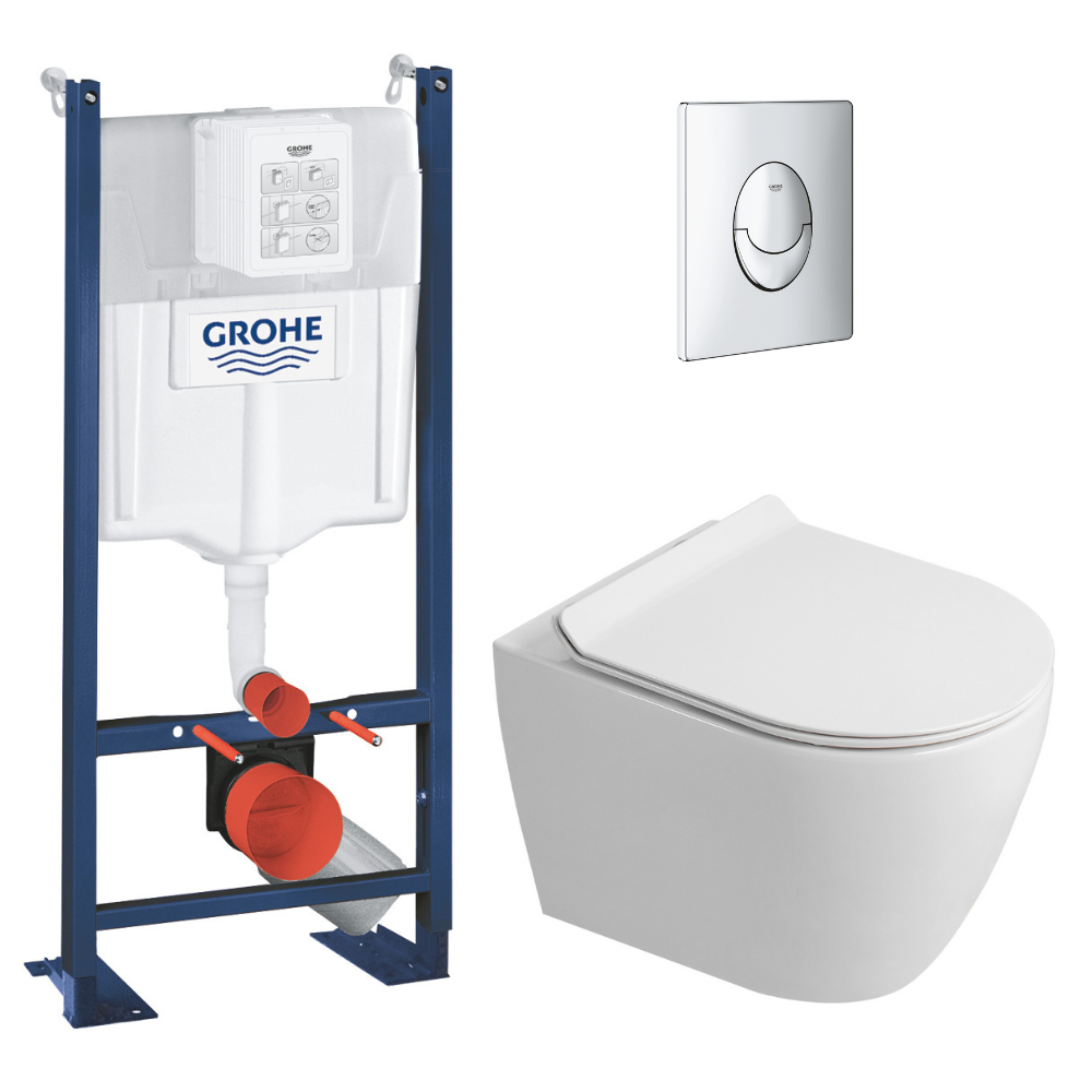 Grohe Rapid SL Pack WC bâti autoportant + WC suspendu sans bride Ceramia avec abattant SoftClose + plaque chrome (GRRCEPXWR10-FR)