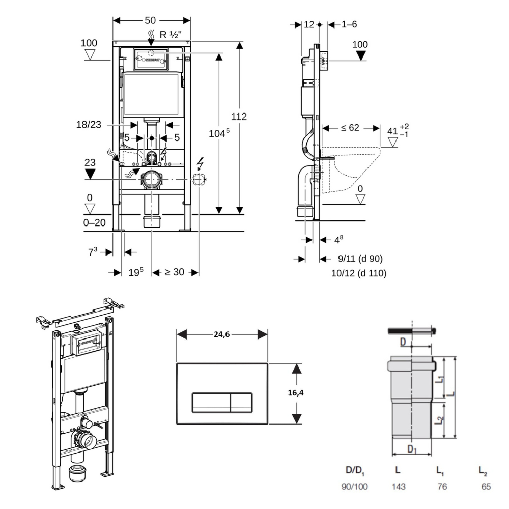 - Geberit Ensemble bâti-support Duofix UP100 + réservoir pour WC 112 cm (458.103.00.2)