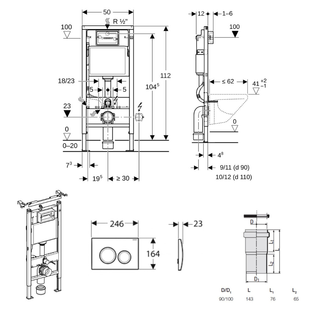 - Geberit Ensemble bâti-support Duofix UP100 + réservoir pour WC 112 cm (458.103.00.2)