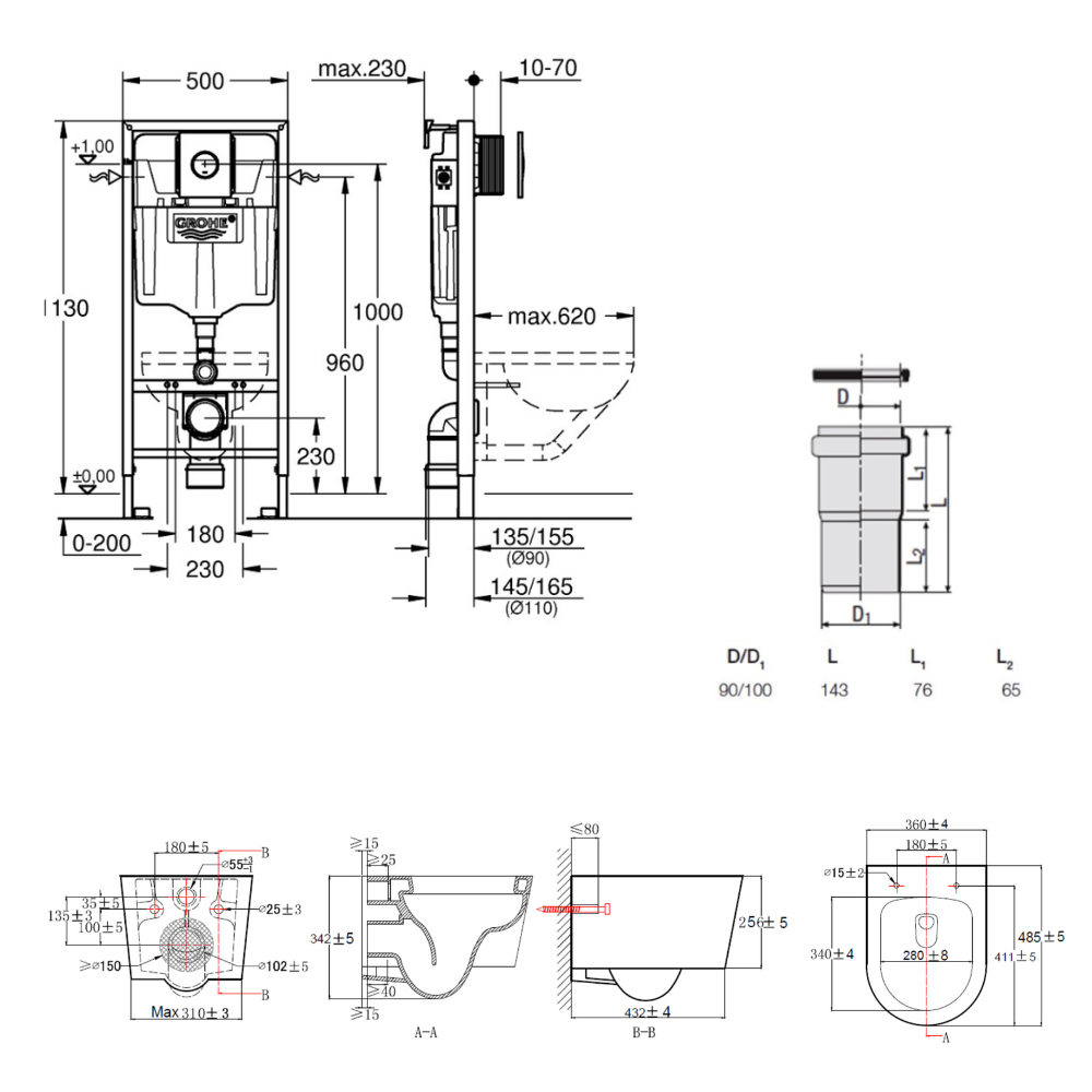 - Redi Manchon de raccordement Ø 90/100 MM pour Rapid SL ou Geberit (VS0564190)