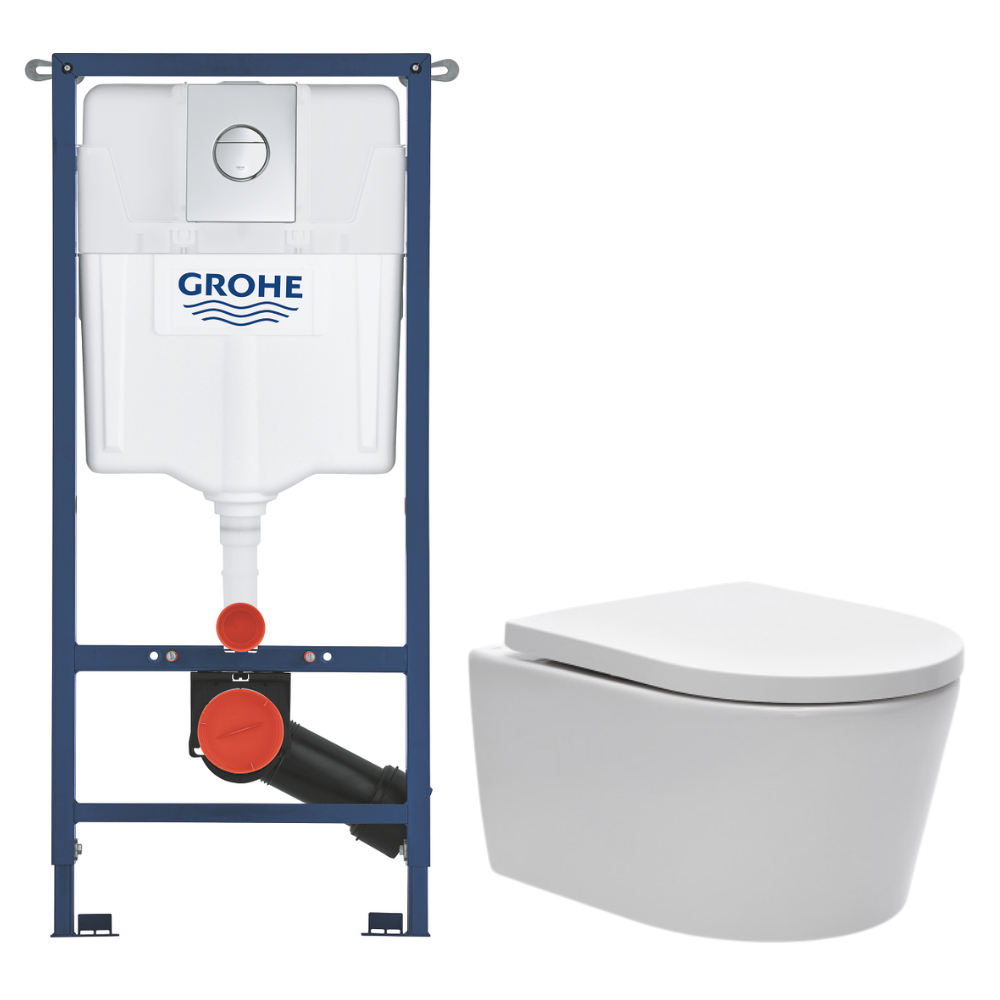 Grohe Solido pack WC bâti 4 en 1 + WC suspendu sans bride Swiss Aqua Technologies avec abattant SoftClose + plaque (GRRSTBRWR01-FR)
