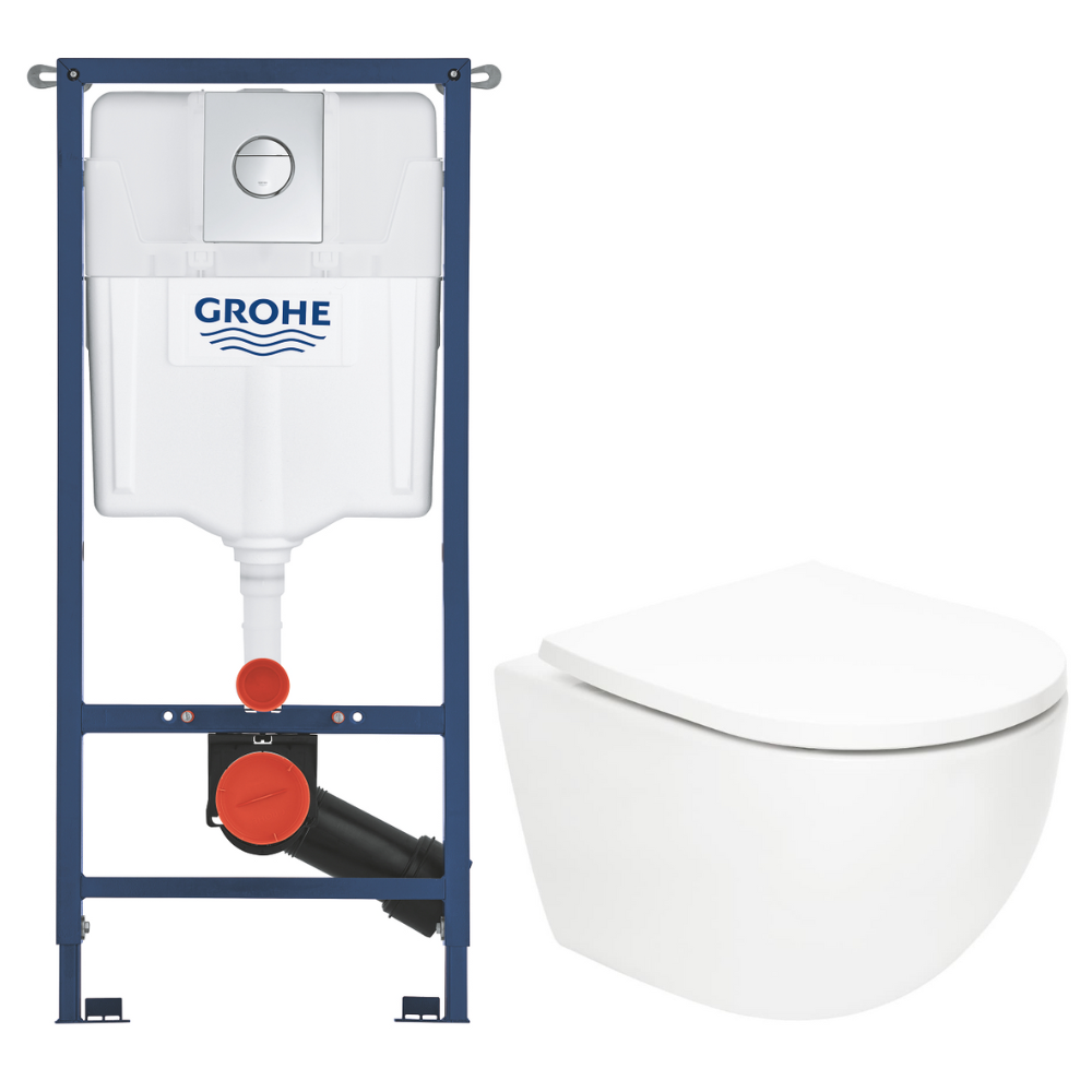 Grohe Solido pack WC bâti 4 en 1 + WC suspendu sans bride Swiss Aqua Technologies avec abattant SoftClose + plaque (GRRSTFUWT01-FR)