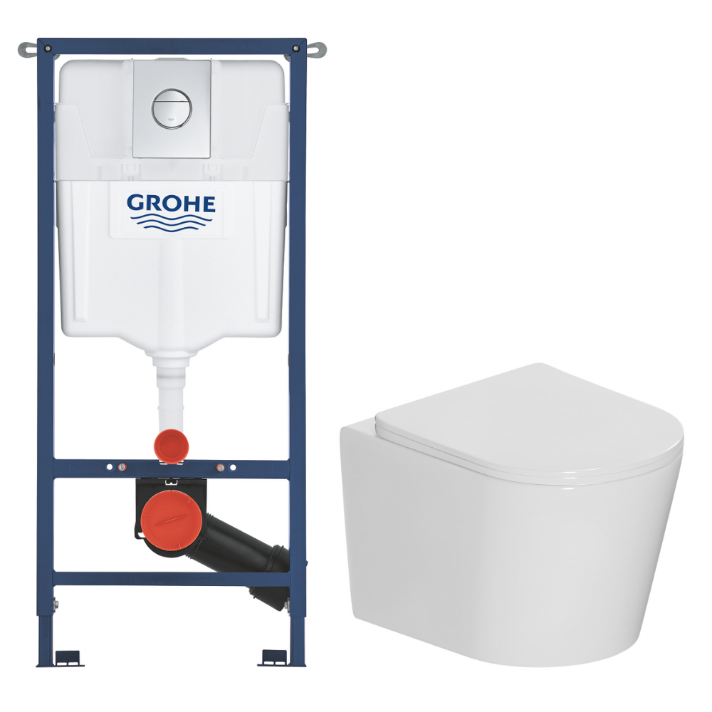 Caractéristiques du pack WC kit bâti-support 4 en 1 Grohe Solido + WC suspendu sans bride Ceramia avec abattant SoftClose + plaque chrome (GRRST14WT01-FR) :