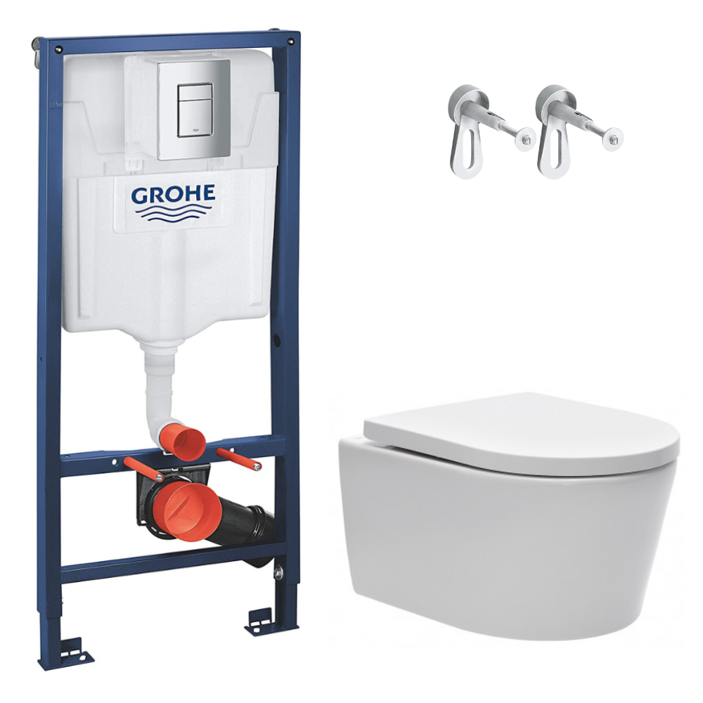 Grohe Rapid SL Pack WC bâti + WC suspendu sans bride avec abattant SoftClose Swiss Aqua Technologies + plaque (GRRSTBRWR01MAN-FR)