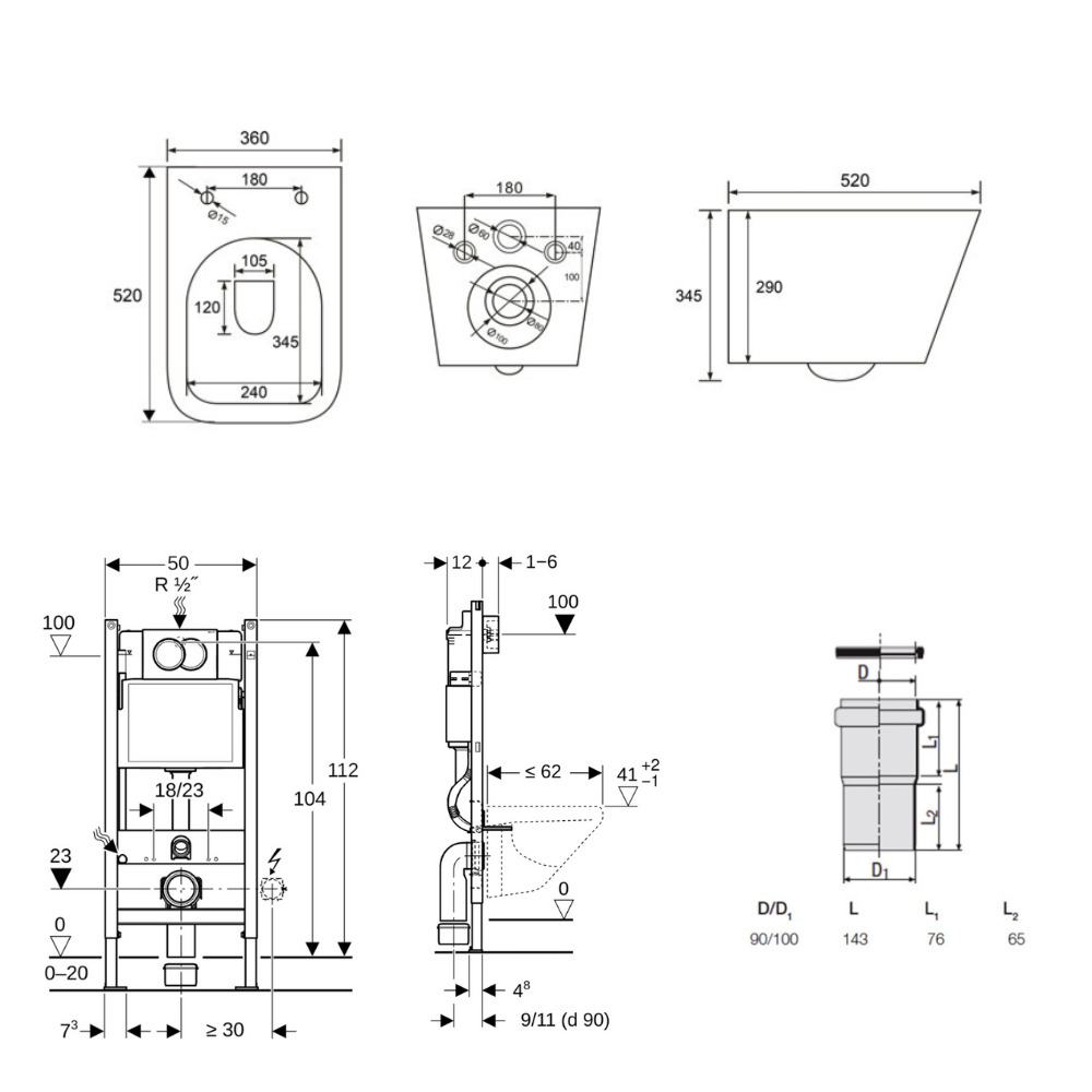 Caractéristiques du Geberit Delta Pack bâti-support Duofix 112cm + Plaque de commande Delta01, Blanche + Fixations murales (111.154.11.3) :