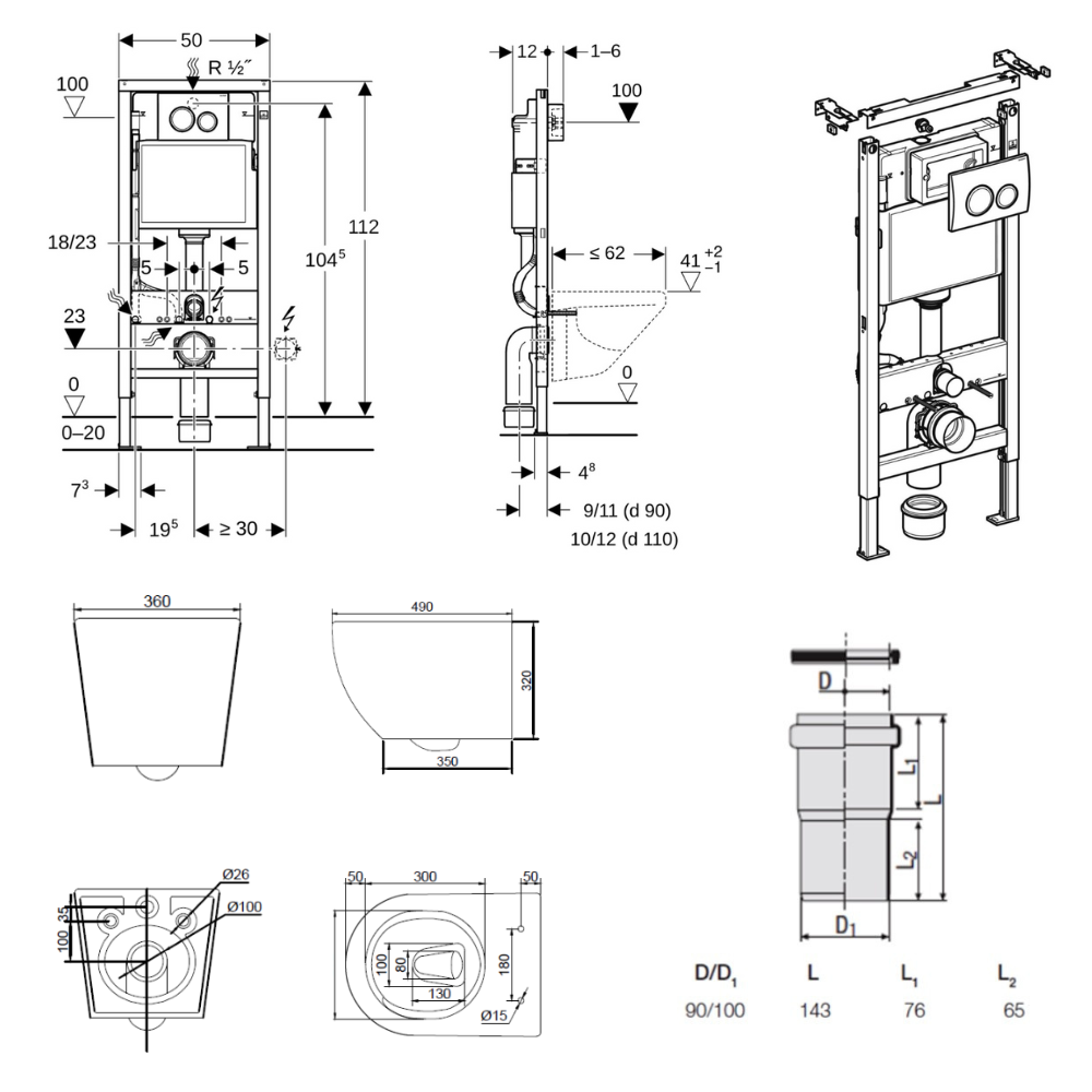 - Geberit Ensemble bâti-support Duofix UP100 + réservoir pour WC 112 cm (458.103.00.2)