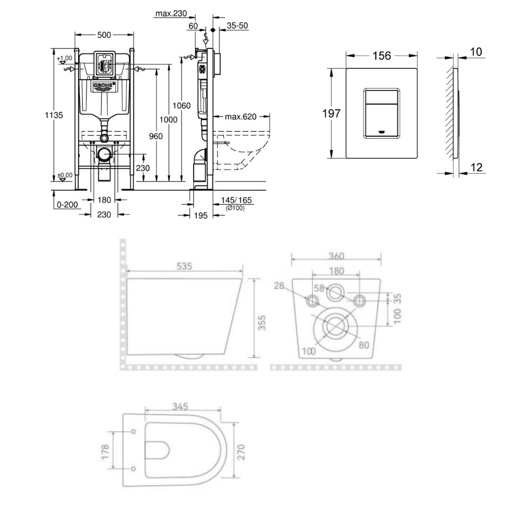 - Grohe RAPID SL Project bâti support autoportant pour WC, 1.13 M (39145000)