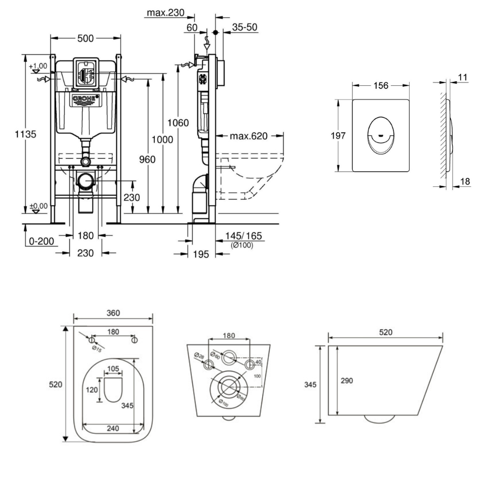 - Grohe RAPID SL Project bâti support autoportant pour WC, 1.13 M (39145000)