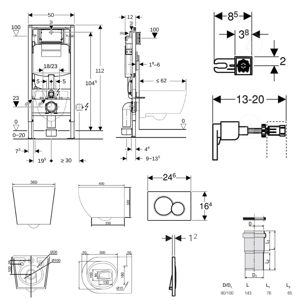 - Rinçage à 2 volumes, convient pour plaques de déclenchement Geberit Sigma01, Sigma20, Sigma50, Sigma60, Sigma70, Sigma80 ou Bolero