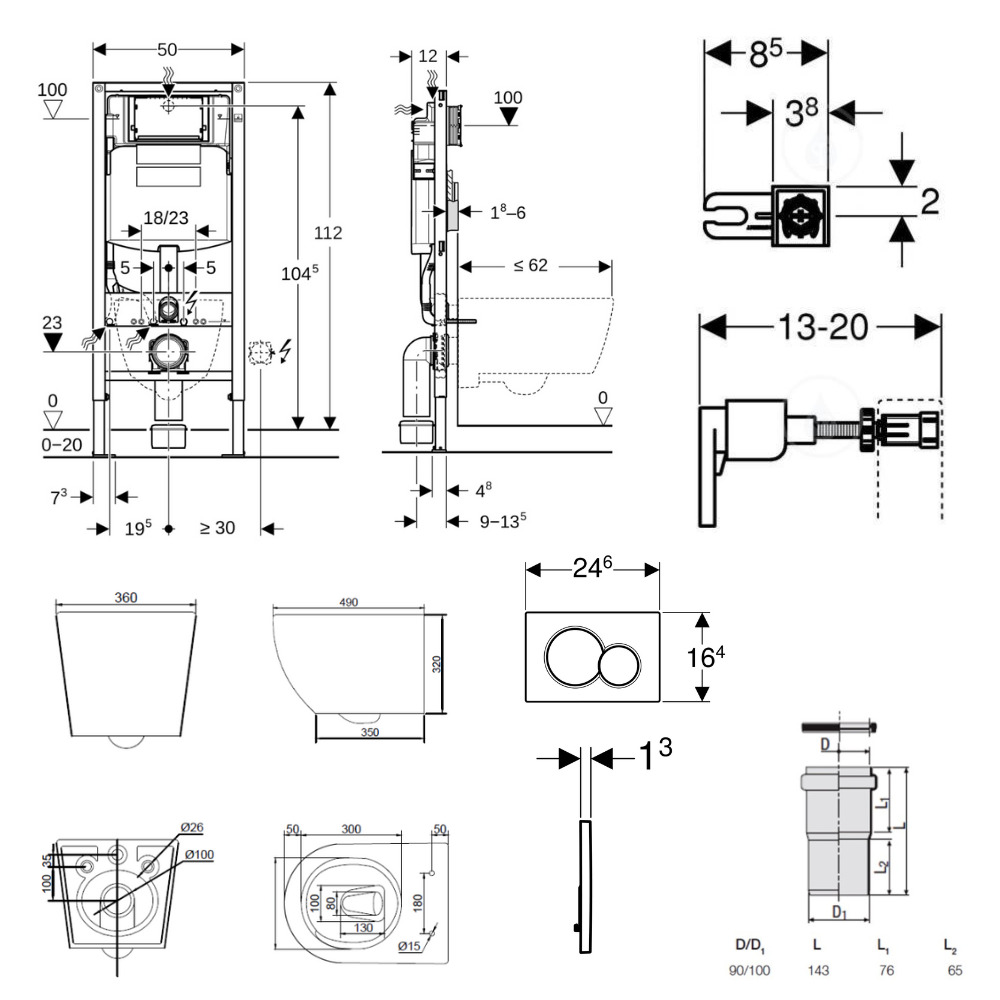 - Rinçage à 2 volumes, convient pour plaques de déclenchement Geberit Sigma01, Sigma20, Sigma50, Sigma60, Sigma70, Sigma80 ou Bolero