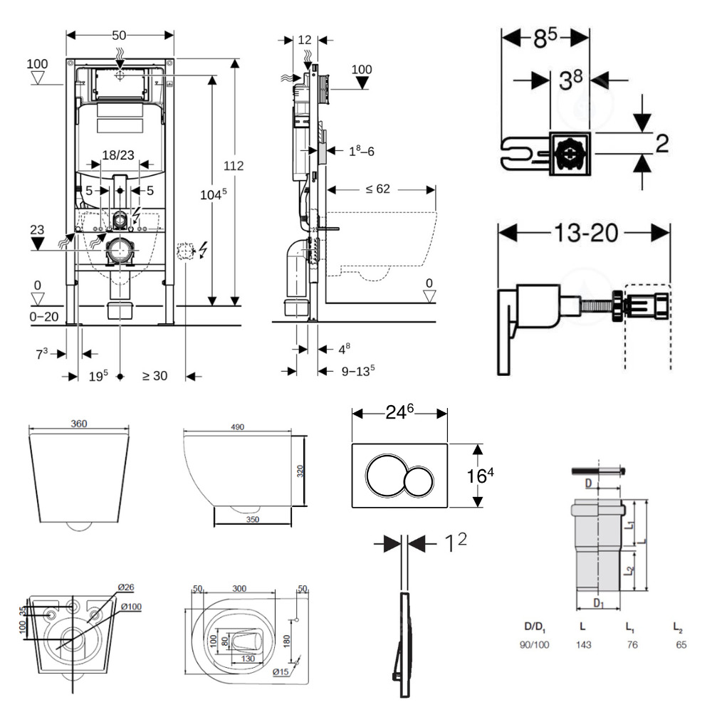 - Rinçage à 2 volumes, convient pour plaques de déclenchement Geberit Sigma01, Sigma20, Sigma50, Sigma60, Sigma70, Sigma80 ou Bolero