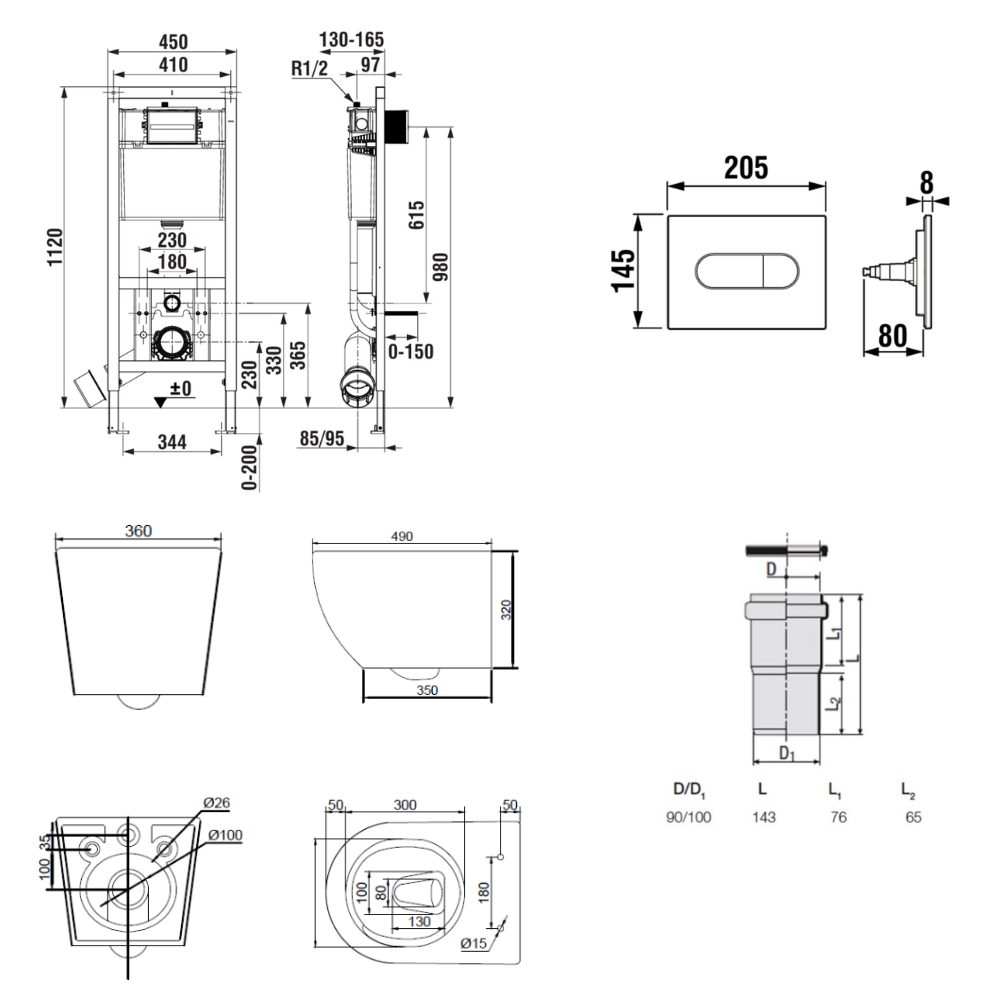 Bâti-support encastrable pour WC suspendu, installation sur cloison légère, hauteur 112 cm, chasse 2/4-6 L (A8900200Z0) :*