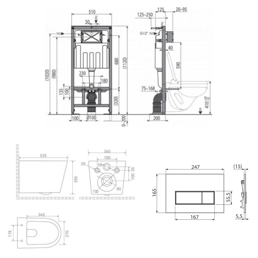 - Volume de chasse (en L): 2-4L / 3.5-6L