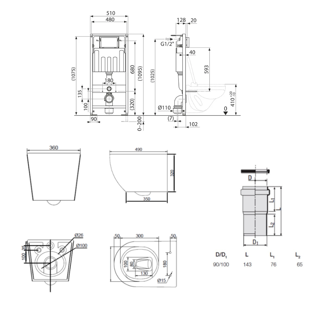 - Redi Manchon de raccordement Ø 90/100 MM pour Rapid SL ou Geberit (VS0564190)