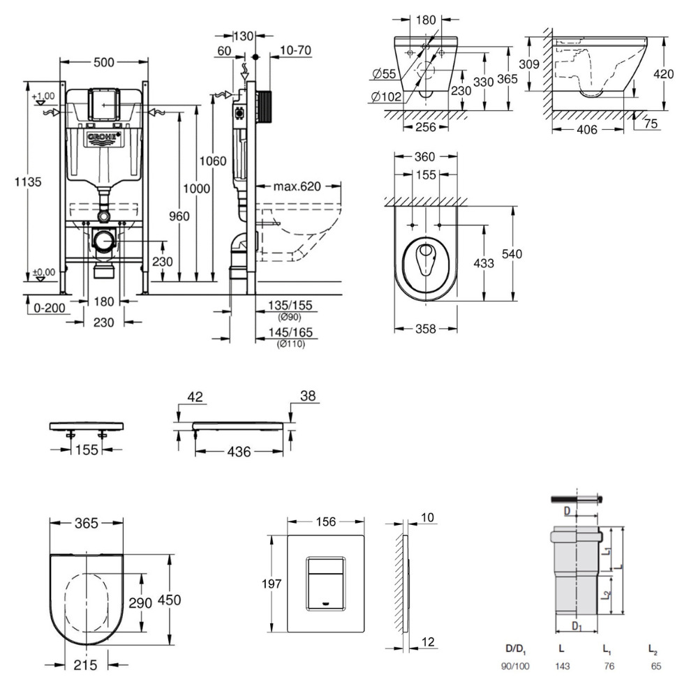 - Grohe RAPID SL PROJECT Bâti Support pour WC, 1,13M (38840000)
