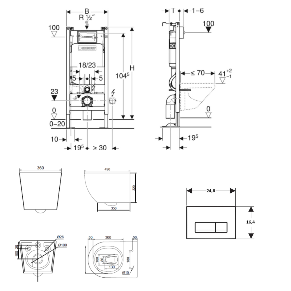 - Geberit Duofix Bâti-support autoportant pour WC suspendu, 112 cm, avec réservoir à encastrer Delta 12 cm (457.565.00.3)