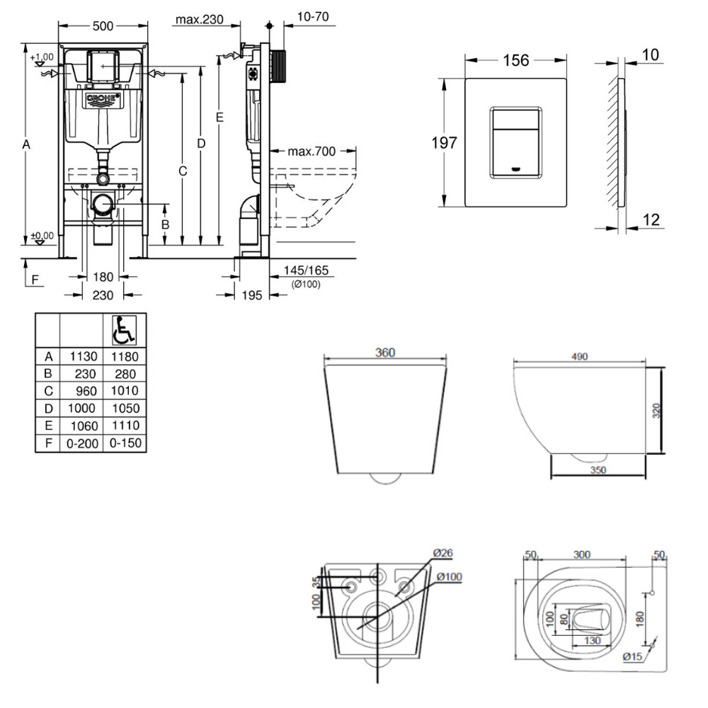 - En ABS Surface GROHE StarLight Technologie GROHE EcoJoy pour une faible consommation d'eau et un débit parfait