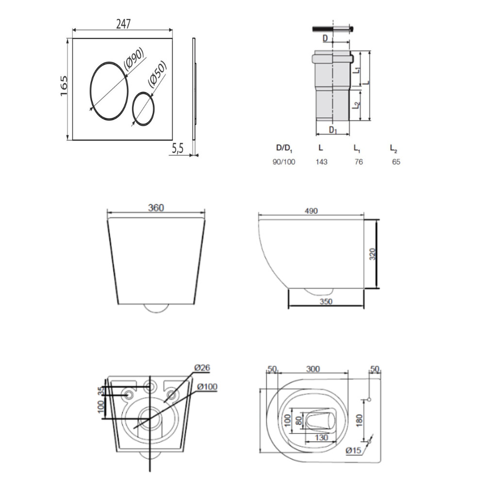 - Pour l’installation d’un WC suspendu avec un pas de raccordement de 180 mm ou 230 mm