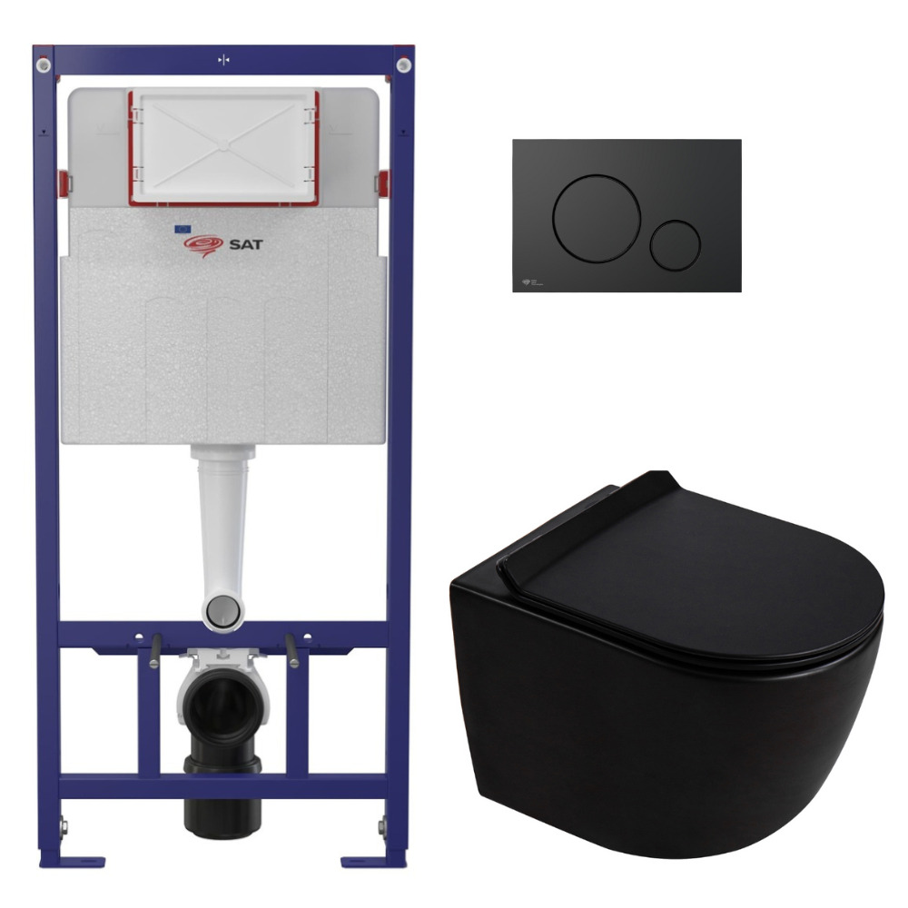 Caractéristiques du pack WC bâti-support 112 cm Swiss Aqua Technologies + WC suspendu sans bride Ceramia PixL avec abattant SoftClose + plaque noir mat (STECEPXBMT01-FR) :
