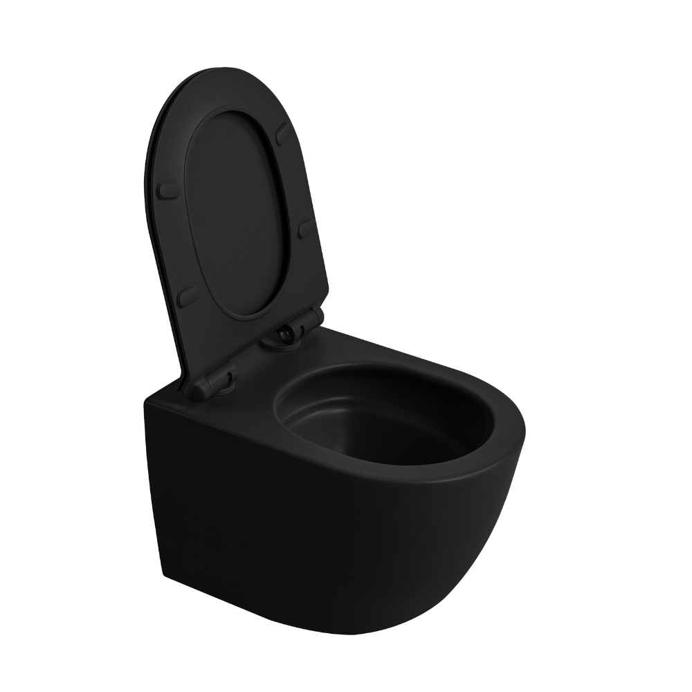 - Ceramia PixL Cuvette suspendue en céramique, sans bride, Tornado, fixations invisibles + abattant Softclose, noir (CEPX010RTORPBKM)