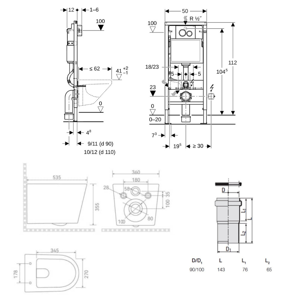 - Geberit Ensemble bâti-support Duofix UP100 + réservoir pour WC 112 cm (458.103.00.2)