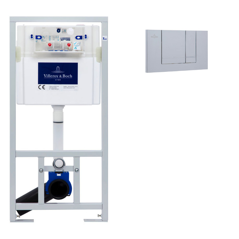 - Villeroy & Boch Viconnect Pro Pack Bâti support pour WC suspendu + Plaque de déclenchement double touche chrome mat (92214469)