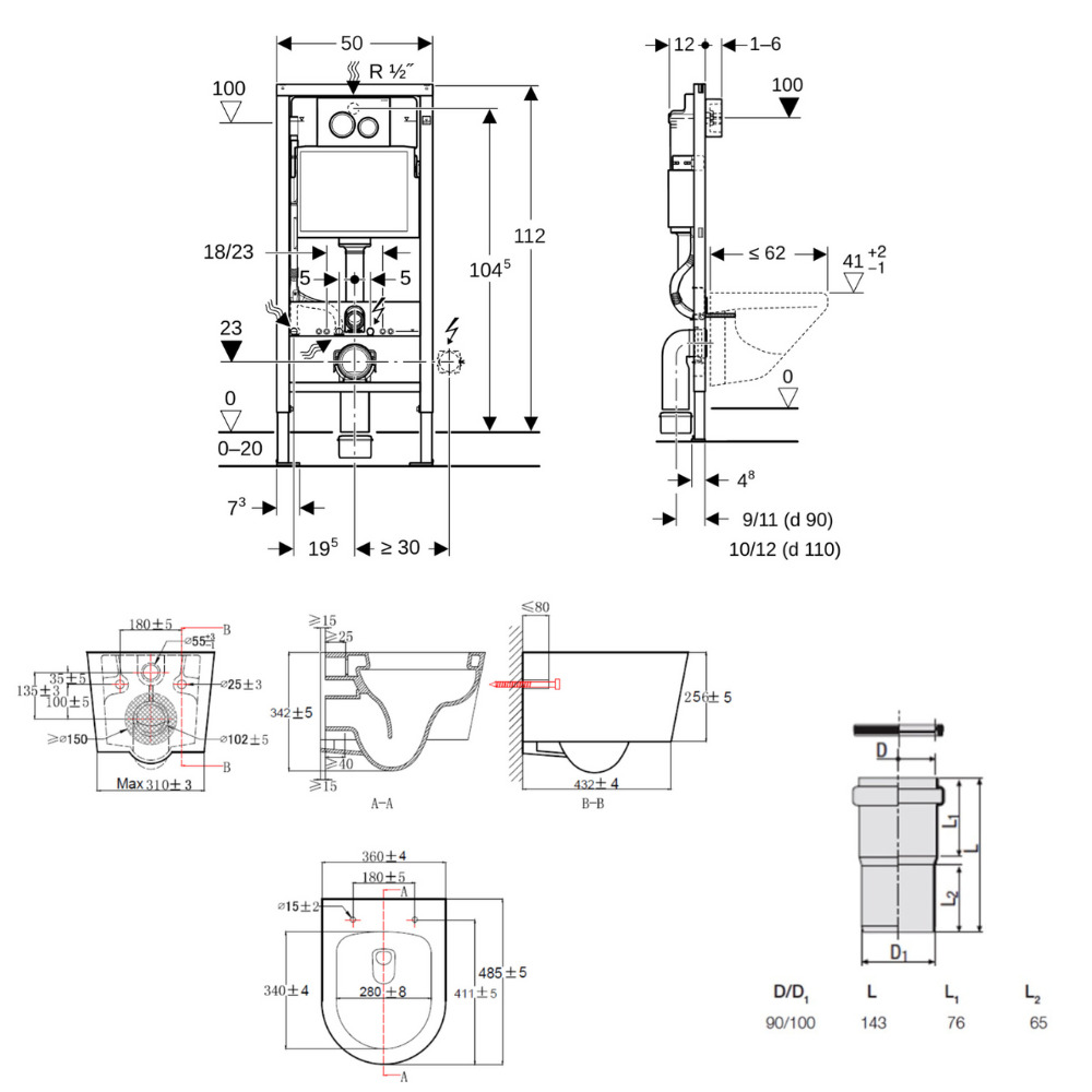 - Redi Manchon de raccordement Ø 90/100 MM pour Rapid SL ou Geberit (VS0564190)