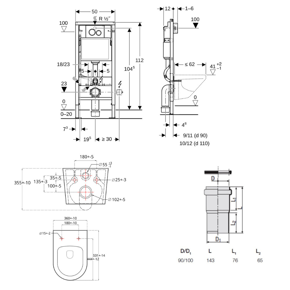 - Redi Manchon de raccordement Ø 90/100 MM pour Rapid SL ou Geberit (VS0564190)